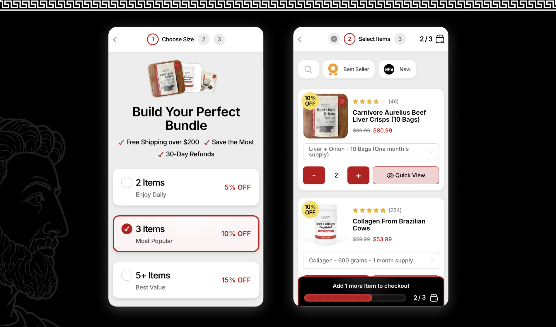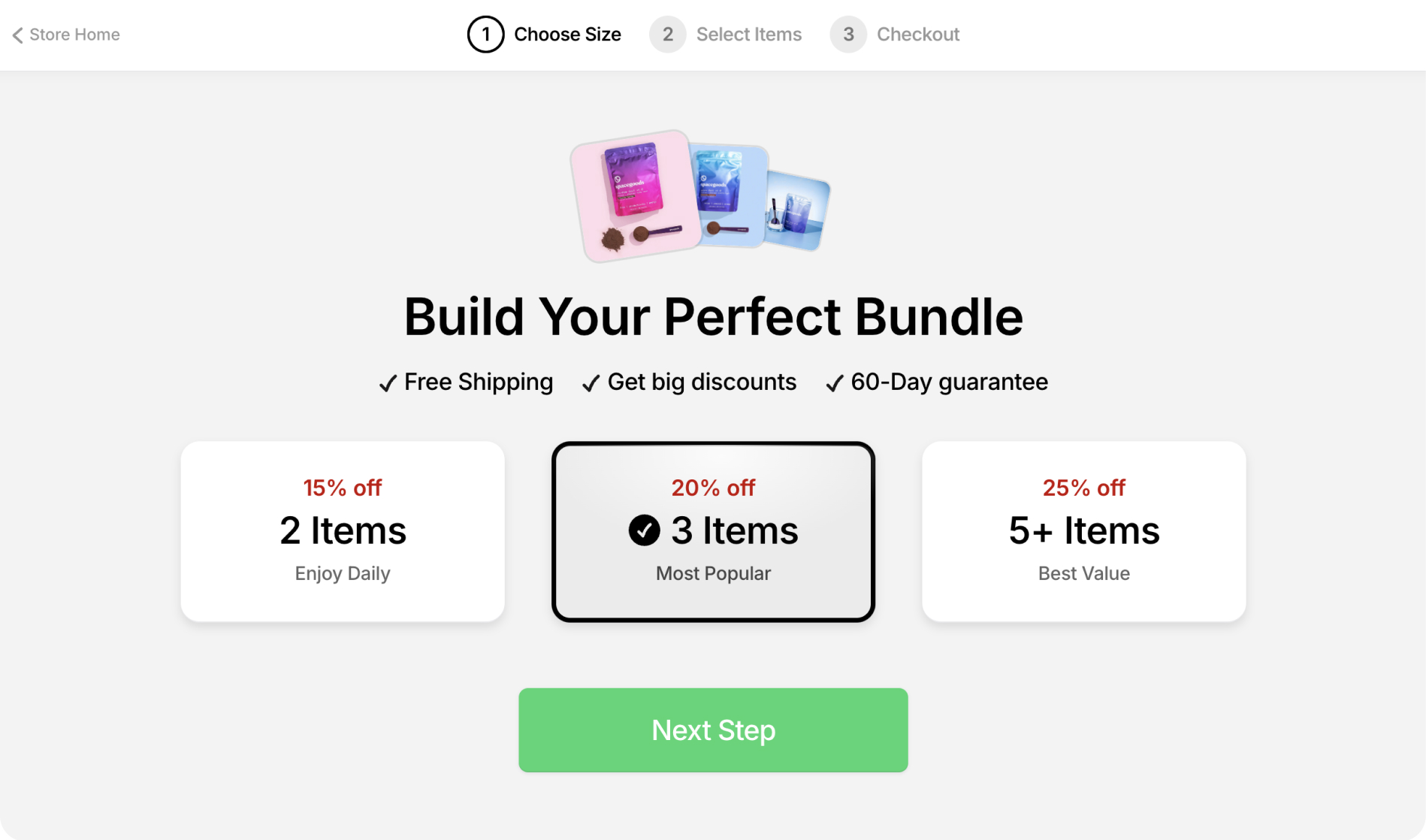 Customizable box sizes (2, 3, 5+ items) encourage larger purchases