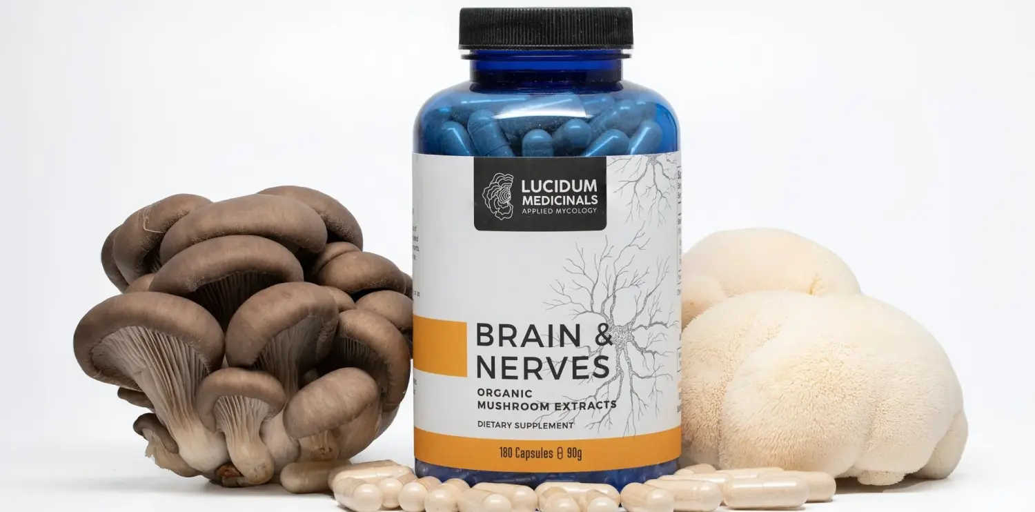 Their product line is tightly focused. Each formula targets one body system using a specific combination of fruiting body mushroom extracts, water and alcohol extracted, tested for beta-glucans and terpenoids. Immune pairs Reishi with Maitake and Turkey Tail for immune regulation. Brain & Nerves is built around an 8:1 Lion's Mane extract alongside Tremella and Oyster Mushroom for cognition and memory. The Lungs formula combines Cordyceps at a 10:1 ratio with Reishi for respiratory support and exercise performance.