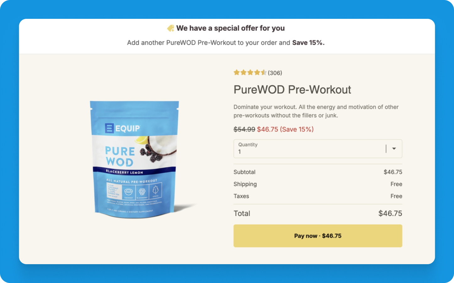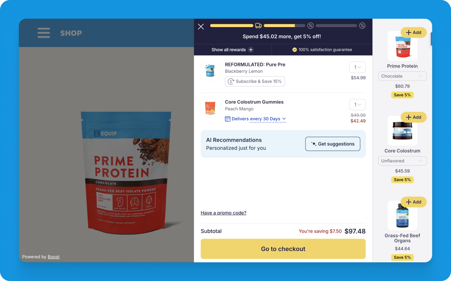 Increase order value by up to 25% with reward-driven upsells integrated into checkout.