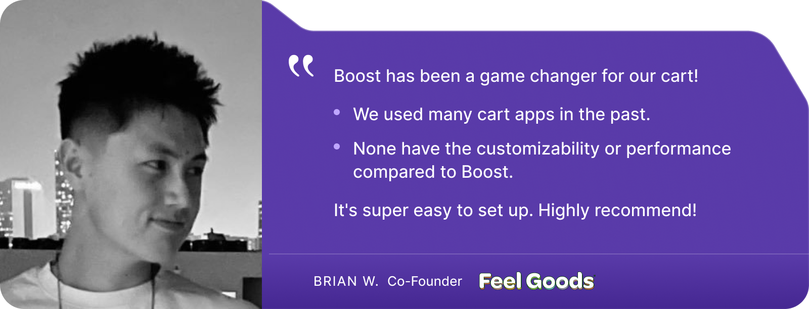 Boost is a game changer. Best customization and performance among cart apps. Easy to set up, and the team added custom features. Highly recommend!